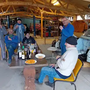 Déchetterie, ferrailleur, pose d'étagères, coups de balai... et un petit casse -croûte....